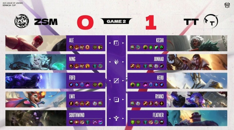 直播吧12月18日讯 2025德玛西亚杯小组赛继续进行,今日第三场比赛由ZSM对阵TT!