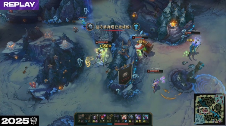 第一局前期Junjia奇亚娜上路配合Xiaoxu贾克斯击杀Zika亚恒拿到一血,双方前期经济差距不大。