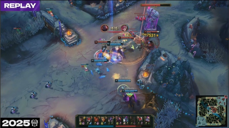 【20:18】中路团战,Xiaohu梅尔反弹岩雀大招,HongQ岩雀被伤害灌死,Vampire牛头又被Elk一箭射掉,WBG打出0换2,经济落后3k。