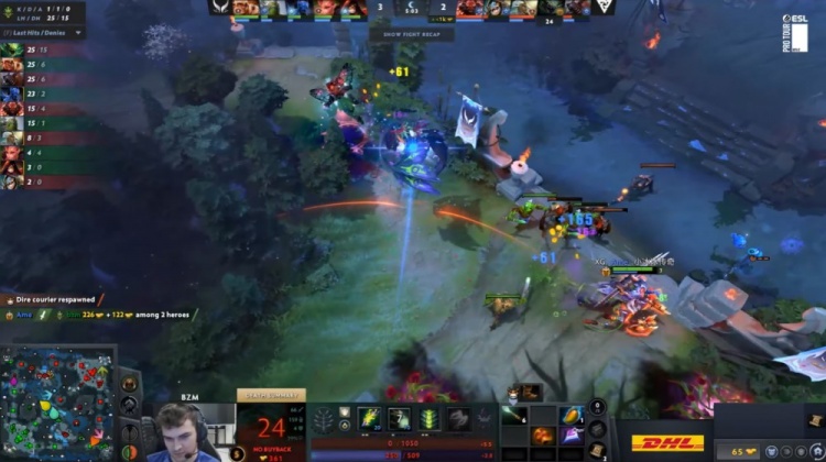 第一局前期,NothingToSay小小对线被bzm毒龙击杀送出一血,随后Ame巨魔游中配合fy花仙子击杀bzm毒龙,Xxs夜魔多次在夜晚完成击杀,XG逐步取得对线主动权。