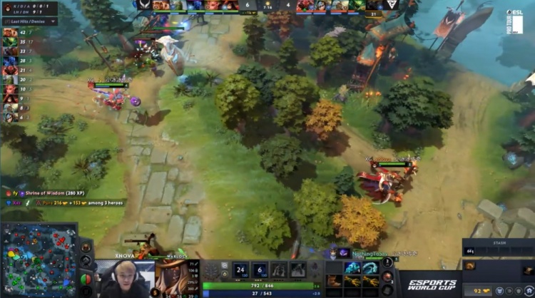 【8:39】上路团战,X哥晚上夜魔无敌逮捕bzm毒龙,xNova术士拿到人头,白天来临,XG推掉Tundra上路一塔。