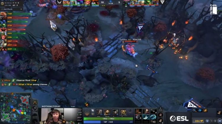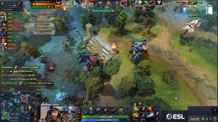 天辉方XG:Ame巨魔、NothingToSay小小、Xxs夜魔、fy花仙子、xNova术士