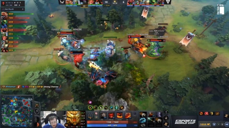 【16:13】下路X哥被Tundra四人逮捕,河道NTS小小扔回小鱼,后者跳走,双方拉开。