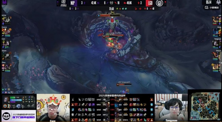 【25:04】龙魂团,LGD直接拿下水龙魂!Guwon杰斯抢龙失败自己和Zhuo牛头一起白给!Tangyuan发条闪现向前补输出!这波LGD轻松打出1换4,拆掉NIP中一塔,回头拿下大龙!9K经济差了!