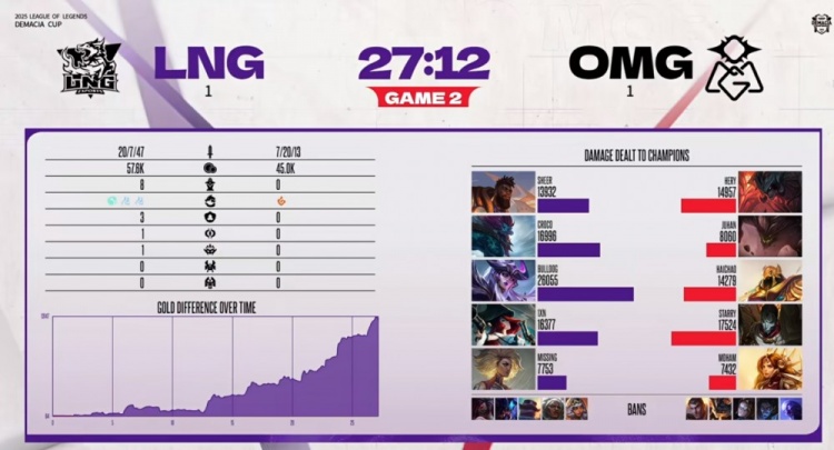 直播吧12月24日讯 2025年德玛西亚杯来到第二阶段,今天的首场比赛是LNG对阵OMG!