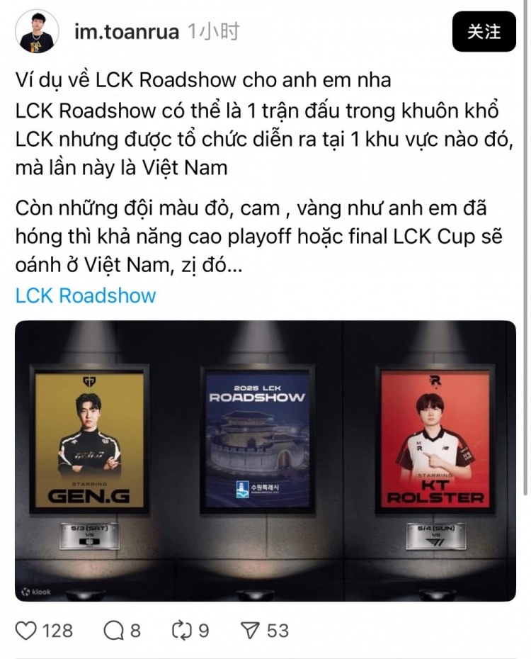也就是说部分LCK的赛事将搬迁到越南举办,并且网友爆料明年T1、GEN、HLE等队伍都有可能受邀参加越南的一些英雄联盟赛,甚至会在越南举办的LCK CUP(LCK第一赛段)季后赛或决赛。