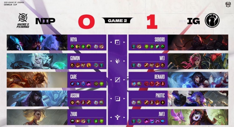 直播吧12月25日讯 2025德玛西亚杯小组赛第二阶段继续进行,今日第二场比赛由iG对阵NIP!