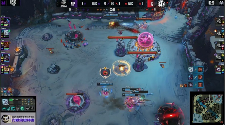 【32:20】iG去开大龙,Guwon佛耶戈抢掉大龙,Photic与Assum双双阵亡,NIP打出0换4一波推平iG基地扳回一城。