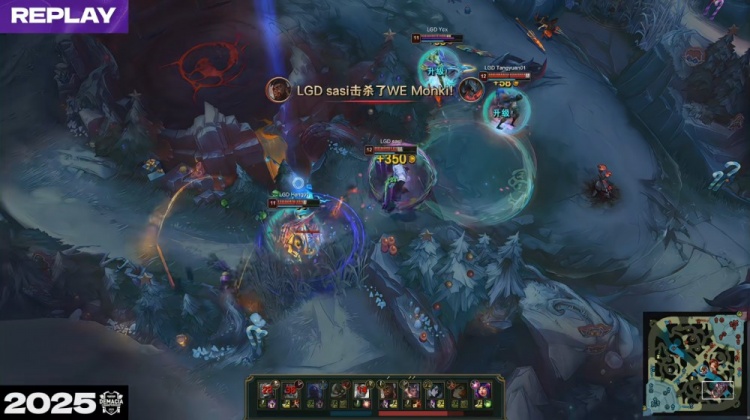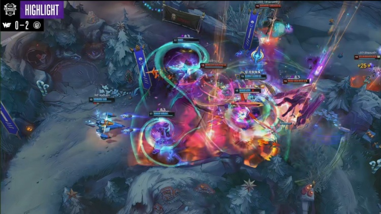 后期小龙与大龙争夺中,Ycx妮蔻两度开WE四人,WE连续大火收汁遭LGD团灭,LGD火龙魂加持轻松一波推平WE基地拿到比赛胜利。