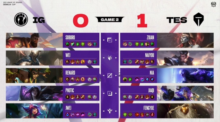直播吧12月26日讯 2025德玛西亚杯来到线上单败淘汰赛阶段,首场比赛由TES对阵iG!