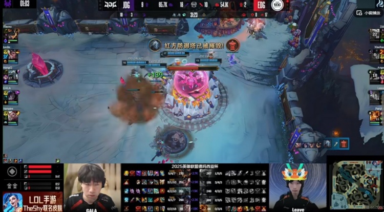 第一局:🎮GALA亚非一次阵亡基地爆炸!Leave炸弹人输出拉满 JDG赢首局