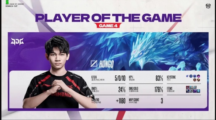 >未来可期?HongQ冰鸟打出5/0/10战绩,斩获JDG对阵EDG的三连MVP