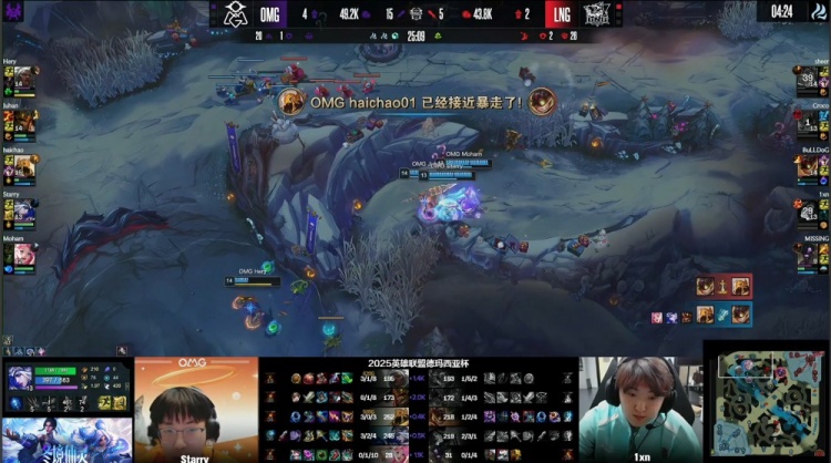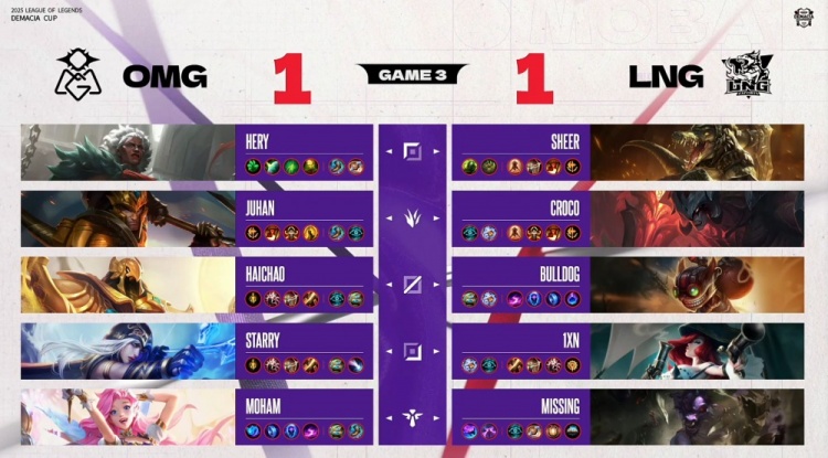 直播吧12月28日讯 2025德玛西亚杯线上单败淘汰赛继续进行,今日由OMG对阵LNG!