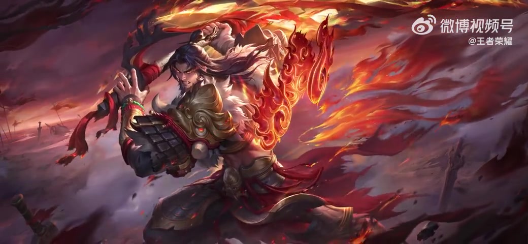 这一动作融合了其标志性的“无畏冲锋”与“霸王斩”,不仅可以突出背后火焰的动态设计,也清晰展现了肩铠的设计结构与金属质感。背景中硝烟弥漫,炽焰破烟而出,更烘托出战场激烈的气势。