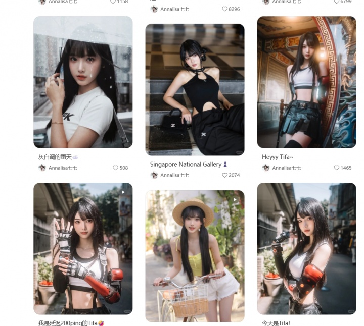 网红"七七"(Annalisa)似乎十分喜欢蒂法,曾多次Cos,部分照片如下: