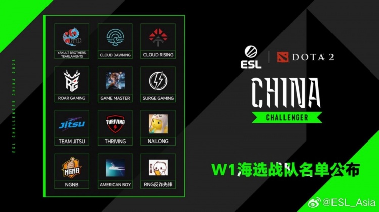 直播吧1月1日讯 DOTA2 ESL中国区挑战者联赛首轮海选战队出炉👇