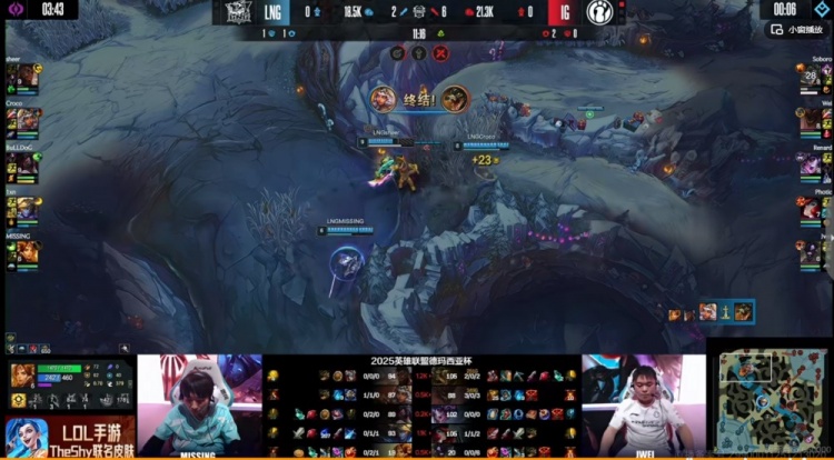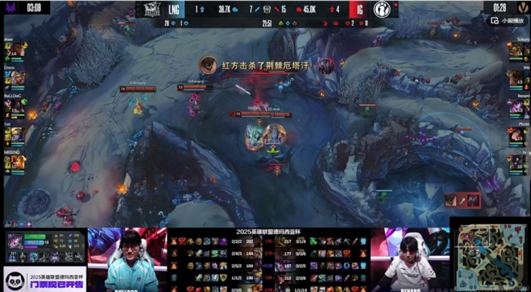 【15:25】iG拿下先锋,直接中路开放撞掉了LNG中一塔!LNG则是提早换掉了对手下路一塔,还是个带战略点的!
