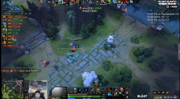 【18分钟】XG中路强动shiro哈斯卡但是y队毒狗关到了后排想输出的Ame小黑,Xxs潮汐交大之后被VG抱团留住,这波shiro哈斯卡追击双杀,VG打出0换3回头拿下一代肉山!shiro哈斯卡带盾!5K经济差!