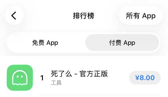 据了解,该App售价8元,截至发稿前已登顶苹果App Store付费应用排行榜第一。