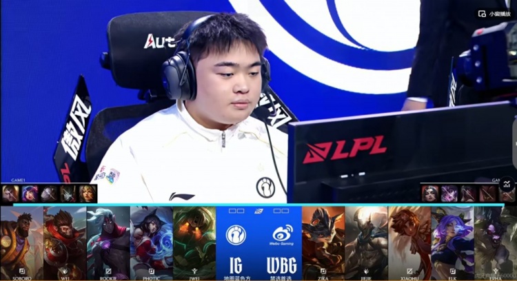 iG:上单Soboro、打野Wei、中单Rookie、下路Photic、辅助Jwei