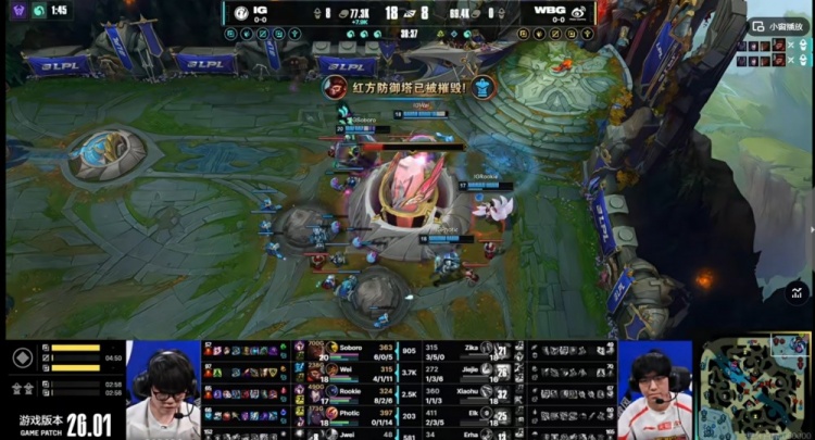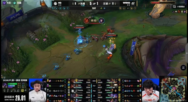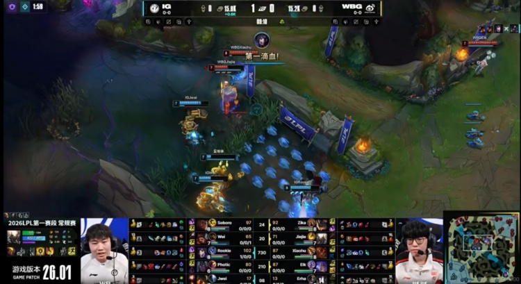 直播吧1月14日讯 2026年LPL第一赛段今天开打!揭幕战是登峰组的WBG对阵iG!