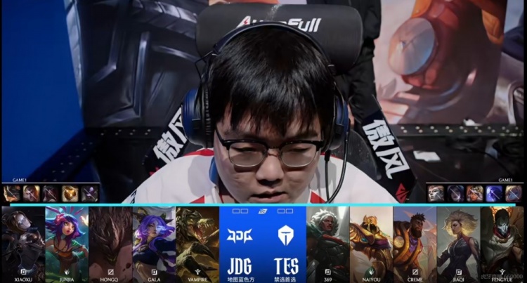 TES:上单369、打野naiyou、中单Creme、下路JiaQi、辅助Fengyue