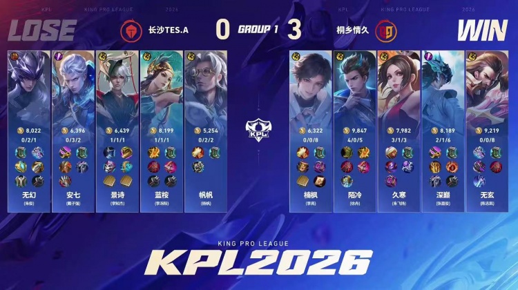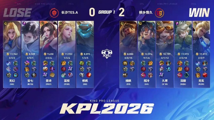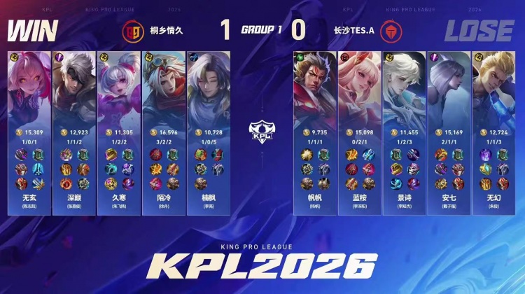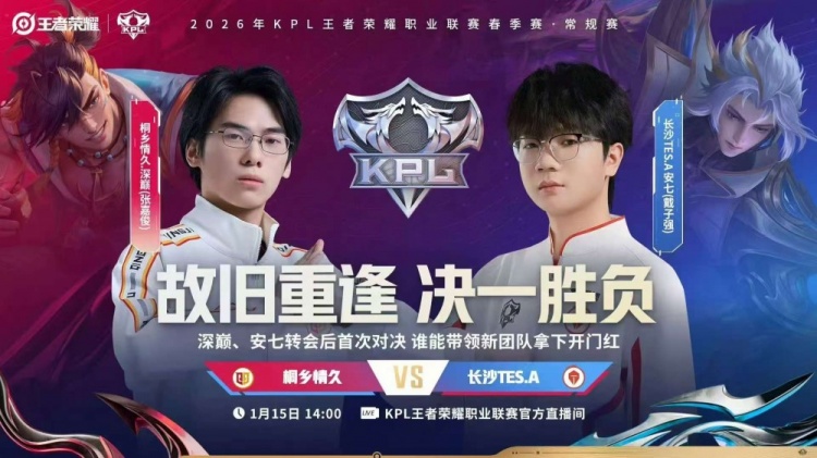 直播吧1月15日讯 2026KPL春季赛今日第一场比赛是由桐乡情久对阵到长沙TES.A!
