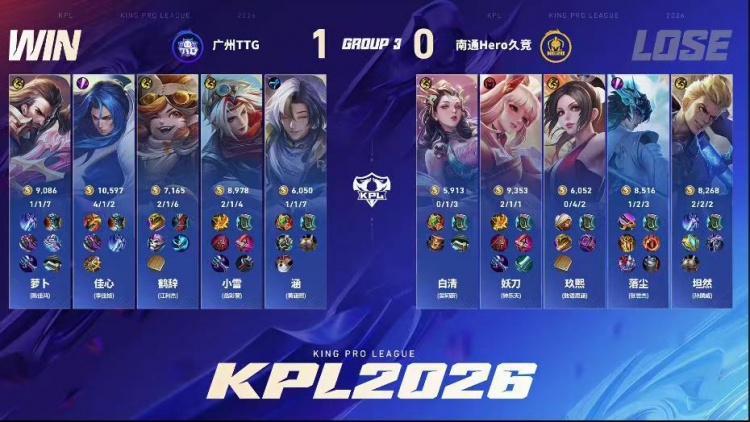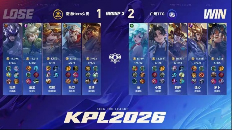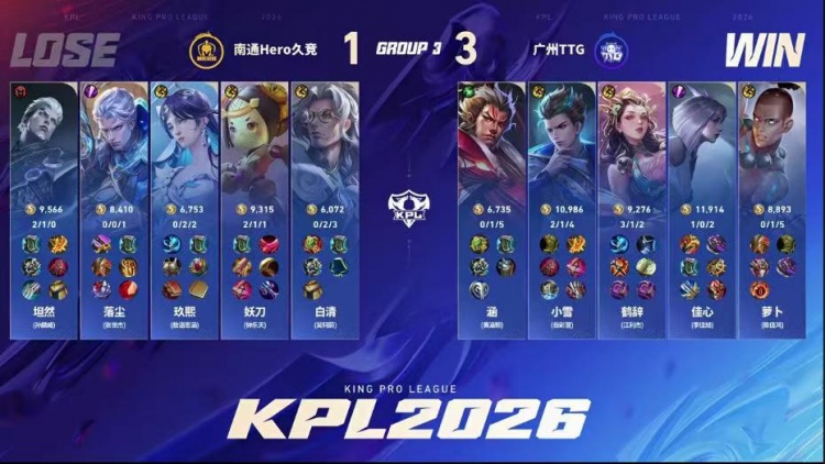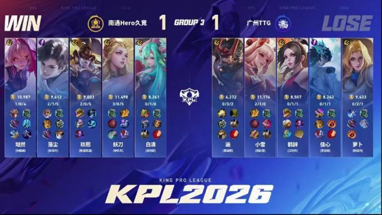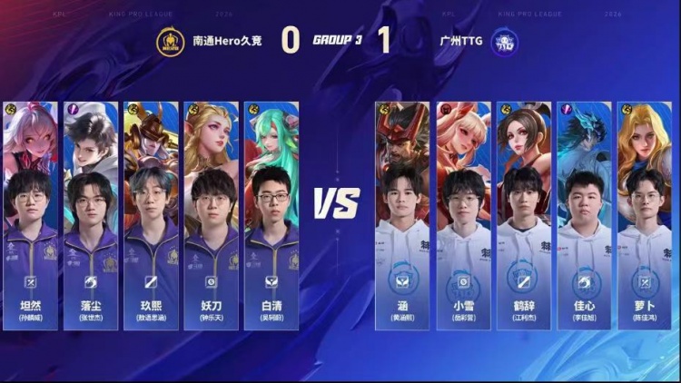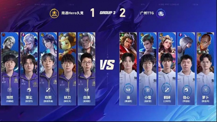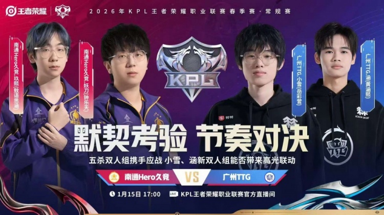 直播吧1月15日讯 2026KPL春季赛本场比赛是由南通Hero久竞对阵到广州TTG!