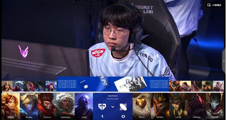 GEN:上单Kiin、打野Canyon、中单Chovy、下路Ruler、辅助Duro