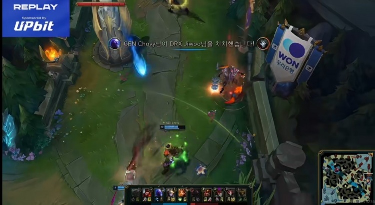 中期GEN不依不饶开始扫图,DRX连续被抓单越打越穷,18分钟Duro曙光开团+丝血上车直接开秀,中路Ruler伊泽瑞尔同步单杀Jiwoo烬,这波0换4打完经济差瞬间一万!