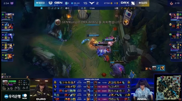 直播吧1月15日讯 2026年LCK杯继续进行中,今天的首场比赛是GEN对阵DRX!