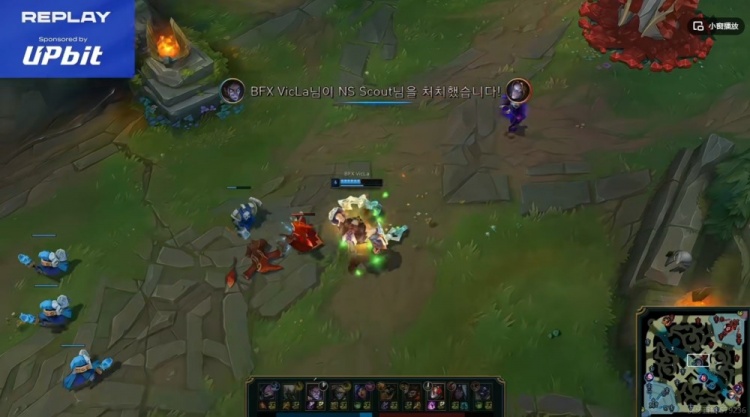 第二局双方开局就打了个中单互换,随后VicLa塞拉斯6级主动出击,Scout发条空大直接被对位单杀!同步Lehends牛头下路被线杀,上路压制的凯南还配合潘森强杀掉了Kingen鳄鱼,BFX三路优,十分钟不到拿下2K经济优势!