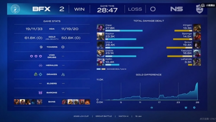直播吧1月15日讯 2026年LCK杯继续进行中,今天的第二场比赛是BFX对阵NS!