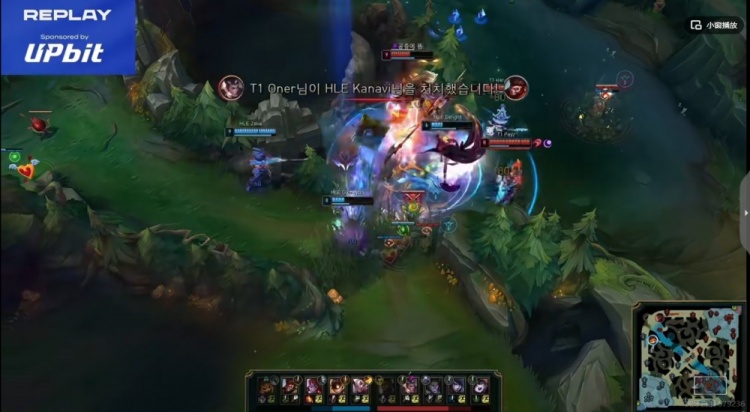 【18:55】中路HLE抱团强杀Oner潘森,Faker塞拉斯交TP先收Delight洛,Zeus纳尔TP想反打,但是正面Faker塞拉斯+TP支援的Doran奎桑提也到了,人数优势的T1直接反击,这波成功击杀HLE四人!只有Kanavi猴子逃生!这波打完T1拉开4K经济差!