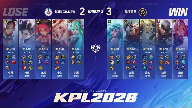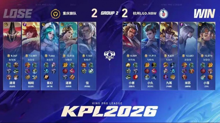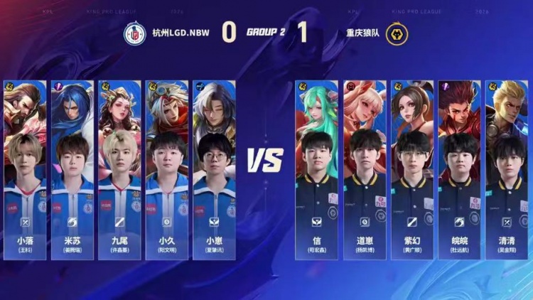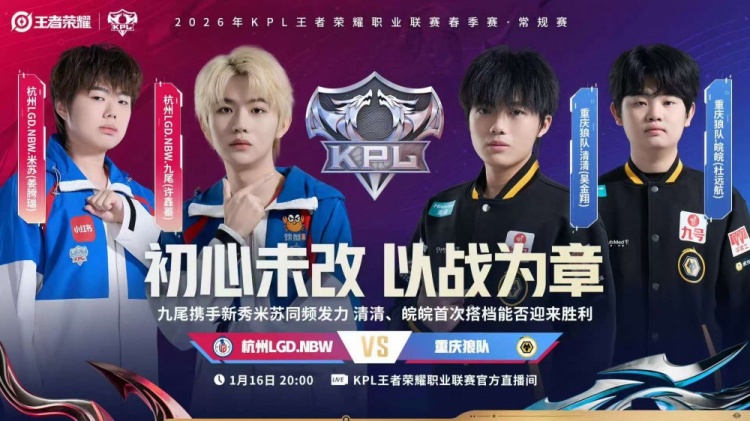 直播吧1月16日讯 2026KPL春季赛本场比赛是由重庆狼队对阵到杭州LGD.NBW!