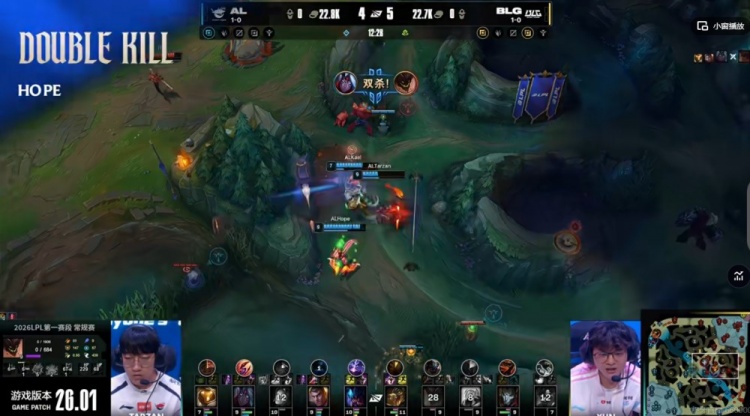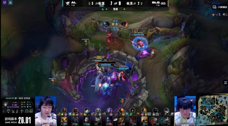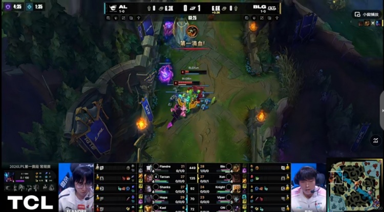 直播吧1月17日讯 2026年LPL第一赛段今天继续,今天的首场比赛又是登峰组的焦点对局,BLG对阵AL!
