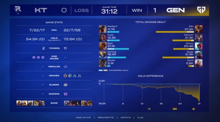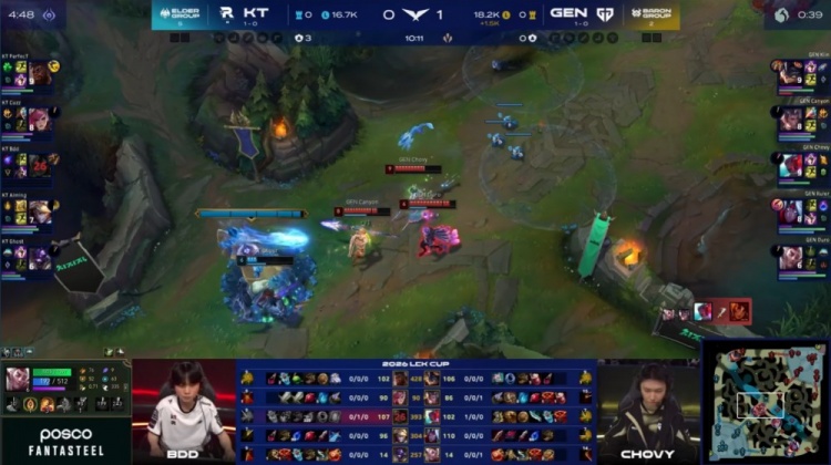 直播吧1月17日讯 2026 LCK CUP继续进行,今日焦点之战由GEN对阵KT!
