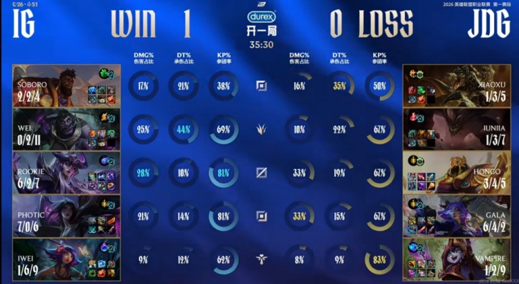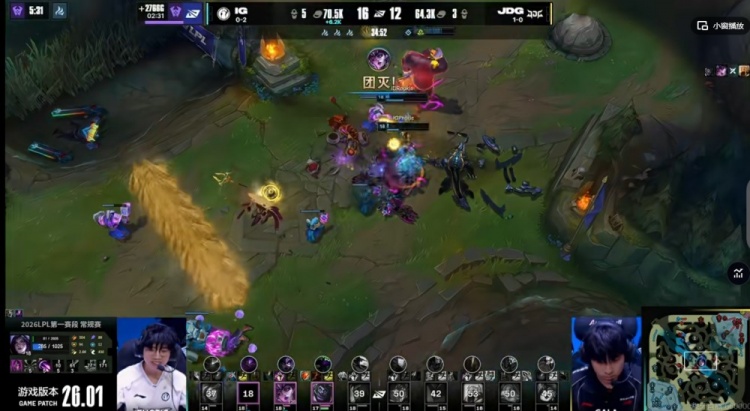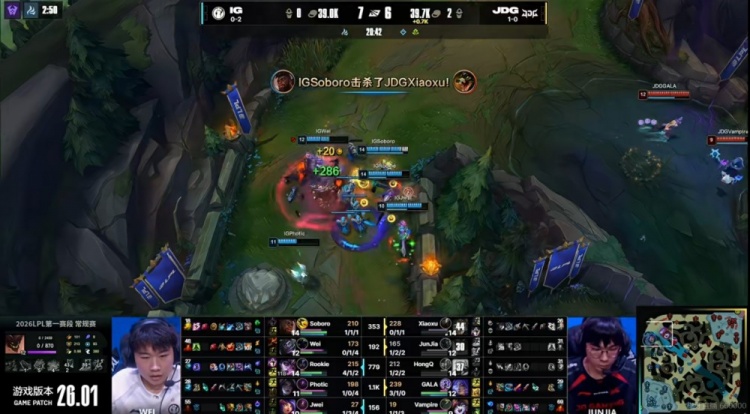 直播吧1月17日讯 2026年LPL第一赛段今天继续,今天的第二场比赛是JDG对阵iG!