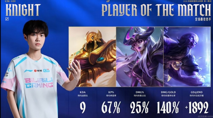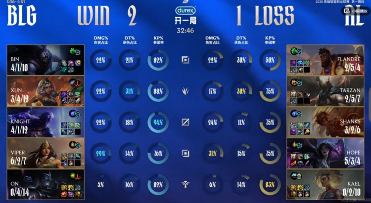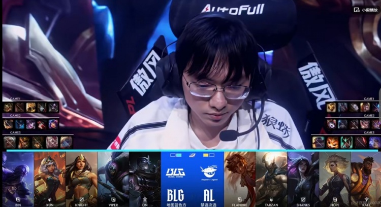 BLG:上单Bin、打野Xun、中单knight、下路Viper、辅助ON