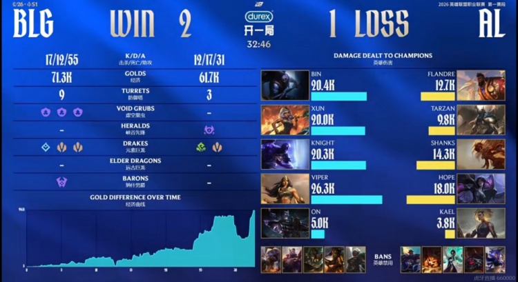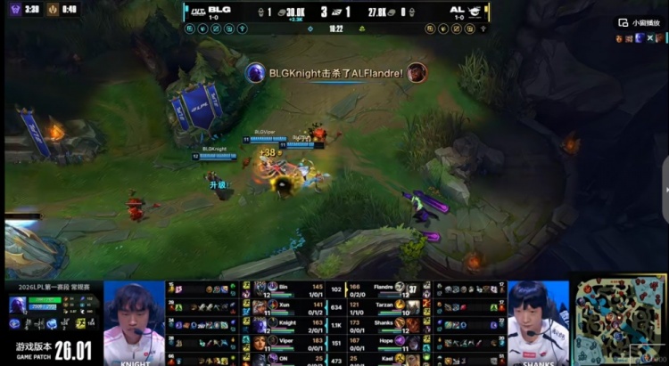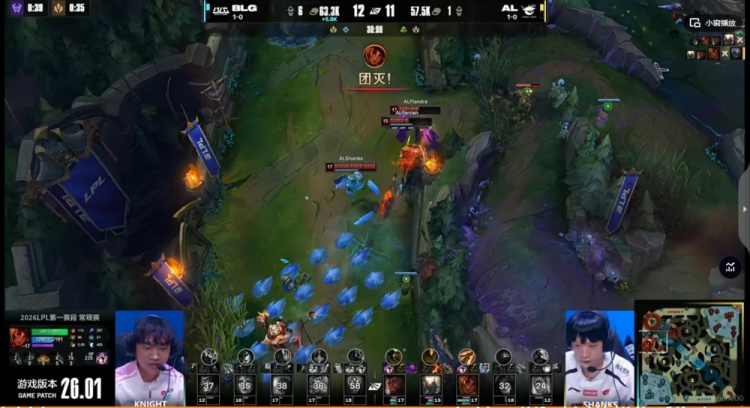 直播吧1月17日讯 2026年LPL第一赛段今天继续,今天的首场比赛又是登峰组的焦点对局,BLG对阵AL!