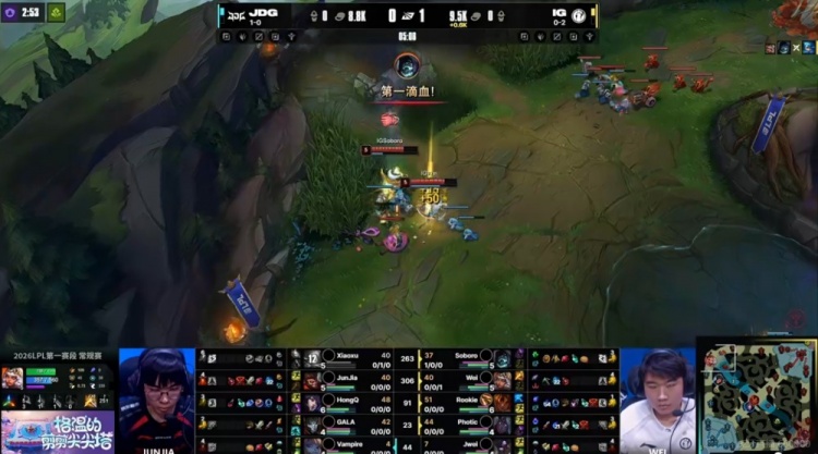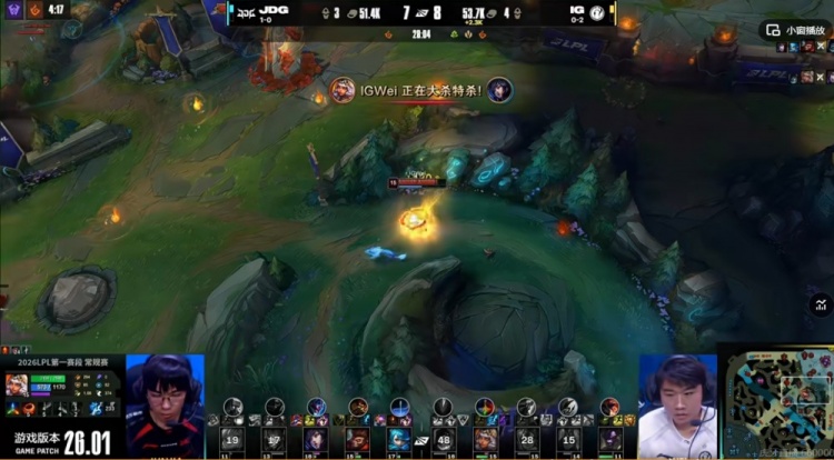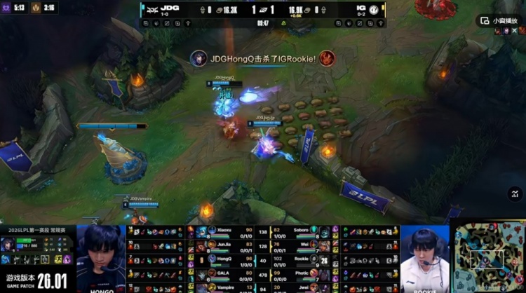 直播吧1月17日讯 2026年LPL第一赛段今天继续,今天的第二场比赛是JDG对阵iG!