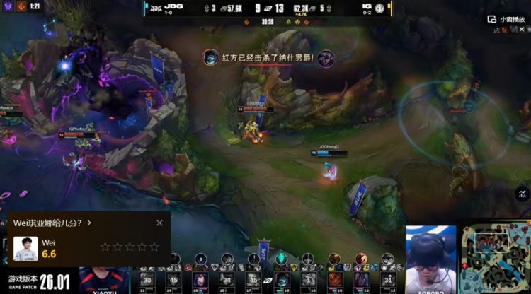 【22:02】JDG抱团拿下第三条小龙!GALA烬在龙坑里没闪跑不掉啊!iG多个人的优势直接拆掉了对手的中路送双外塔,拉开经济差到4K了!