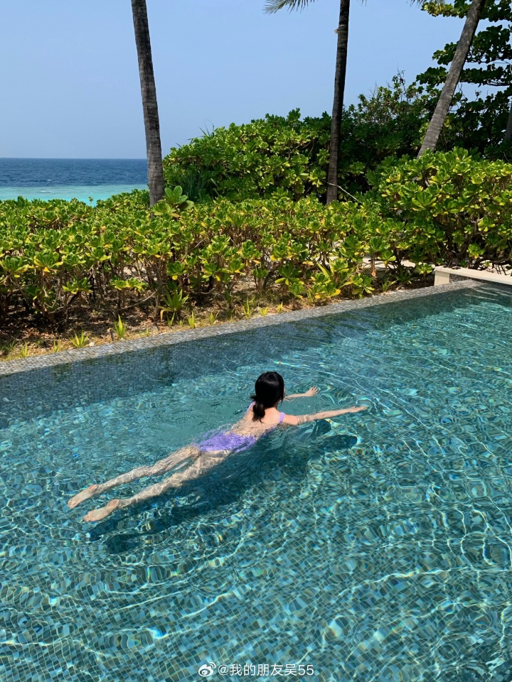 是JackeyLove给你拍的么?JKL女友吴55晒旅游照:海边日光浴☀️