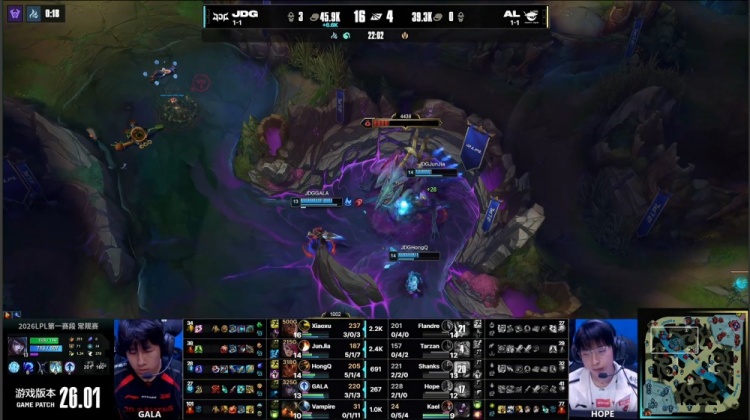 后期JDG再次击溃AL,GALA厄斐琉斯连续收割,JDG经济领先1w,最终推平AL基地先下一城。