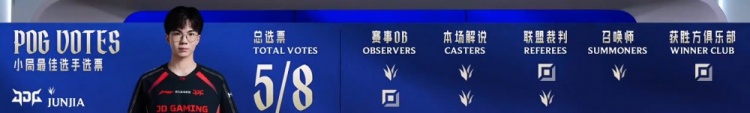 第一局前期双方下路多次交战互有击杀,Flandre兰博多次遭到逮捕还被Xiaoxu奎桑提单杀,JDG逐渐掌控比赛节奏。