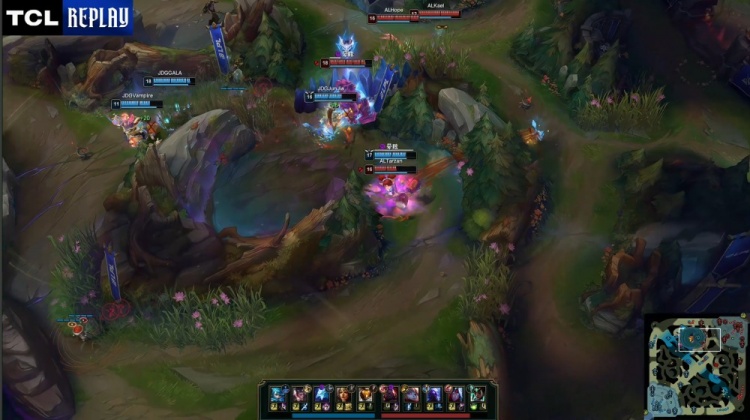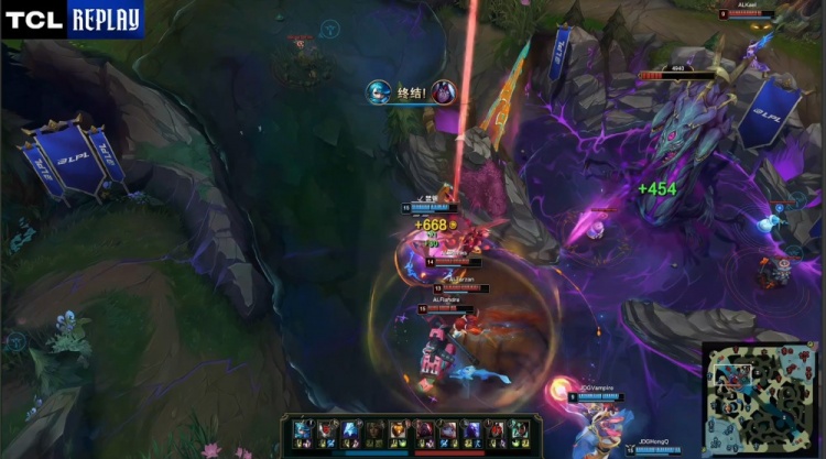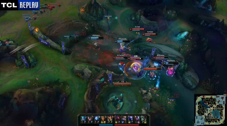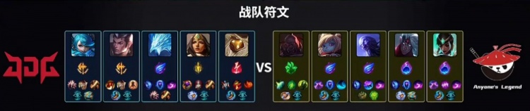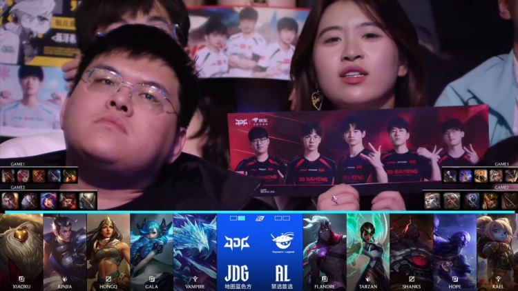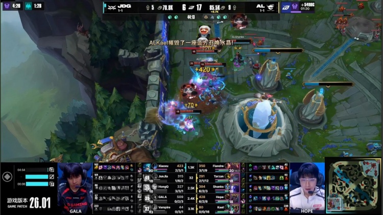 后期Tarzan波比野区关键壁咚HongQ冰鸟将其击杀,Shanks瑞兹连续收割,Vampire巴德带崩JDG,AL连续拿下大龙与水龙魂反超经济,最终AL推平JDG基地扳回一城。