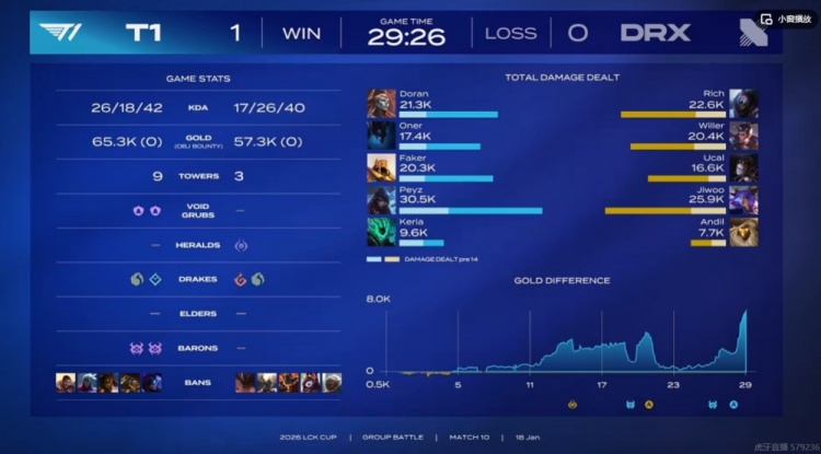 直播吧1月18日讯 2026年LCK杯继续进行中,今天的第二场比赛是T1对阵DRX!