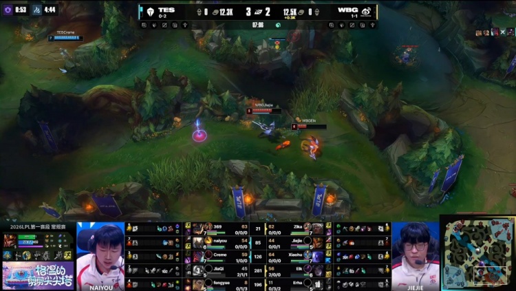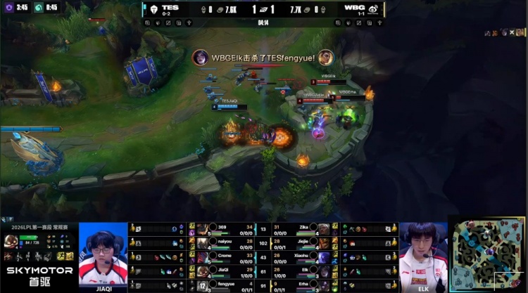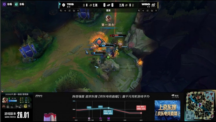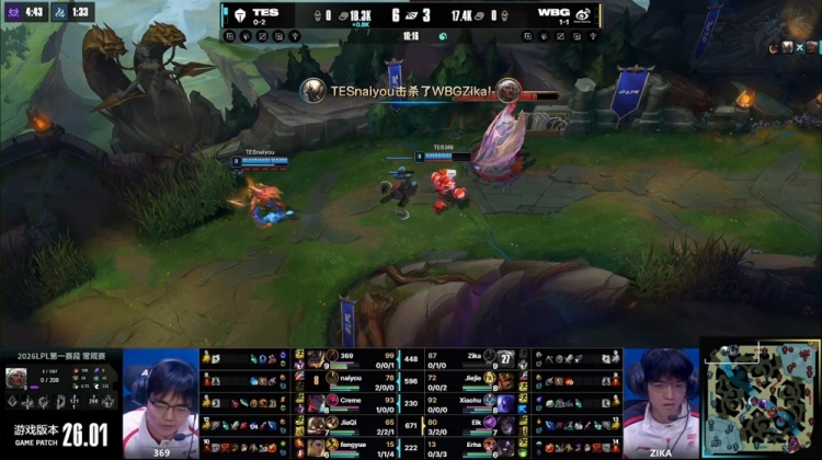 直播吧1月19日讯 2026LPL第一赛段组内赛继续进行,今日第二场比赛由TES对阵WBG!