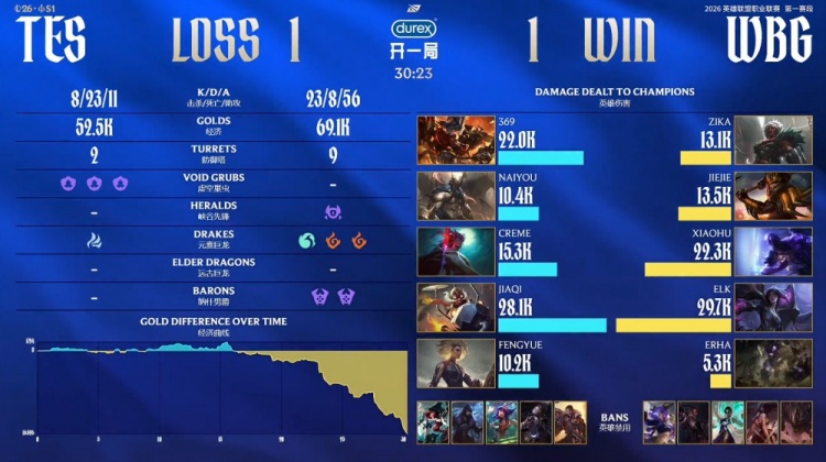 【25:48】TES野区开团毫无一战之力,WBG瞬间打出0换3,经济领先8k。