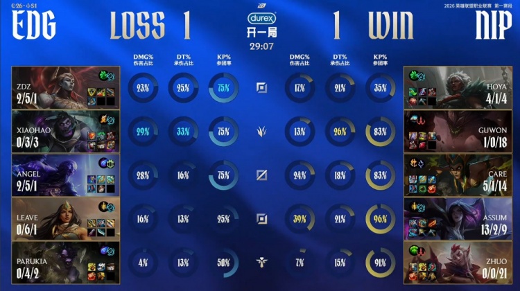 直播吧1月19日讯 2026LPL第一赛段组内赛继续进行,今日第三场比赛由EDG对阵NIP!